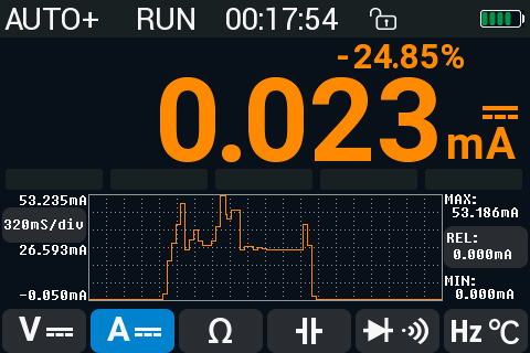 When the sensor is active and transmitting its data to the Home Assistant server via Wi-Fi, its power consumption fluctuates between 25-54 mA. When the ESP32C6 is in deep sleep mode, its power consumption is reduced to 23 μA.