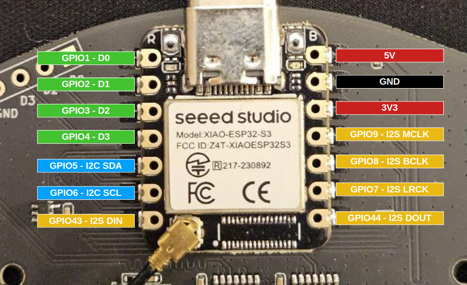 On the ESP32-S3, the following pins are configured for I²S bus: