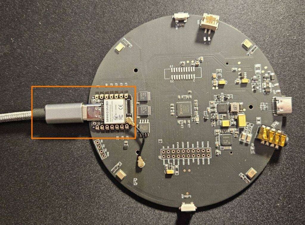 To upload ESPHome firmware to the ReSpeaker, connect it to your computer using a USB cable plugged into the USB port on the ESP32-S3 module.