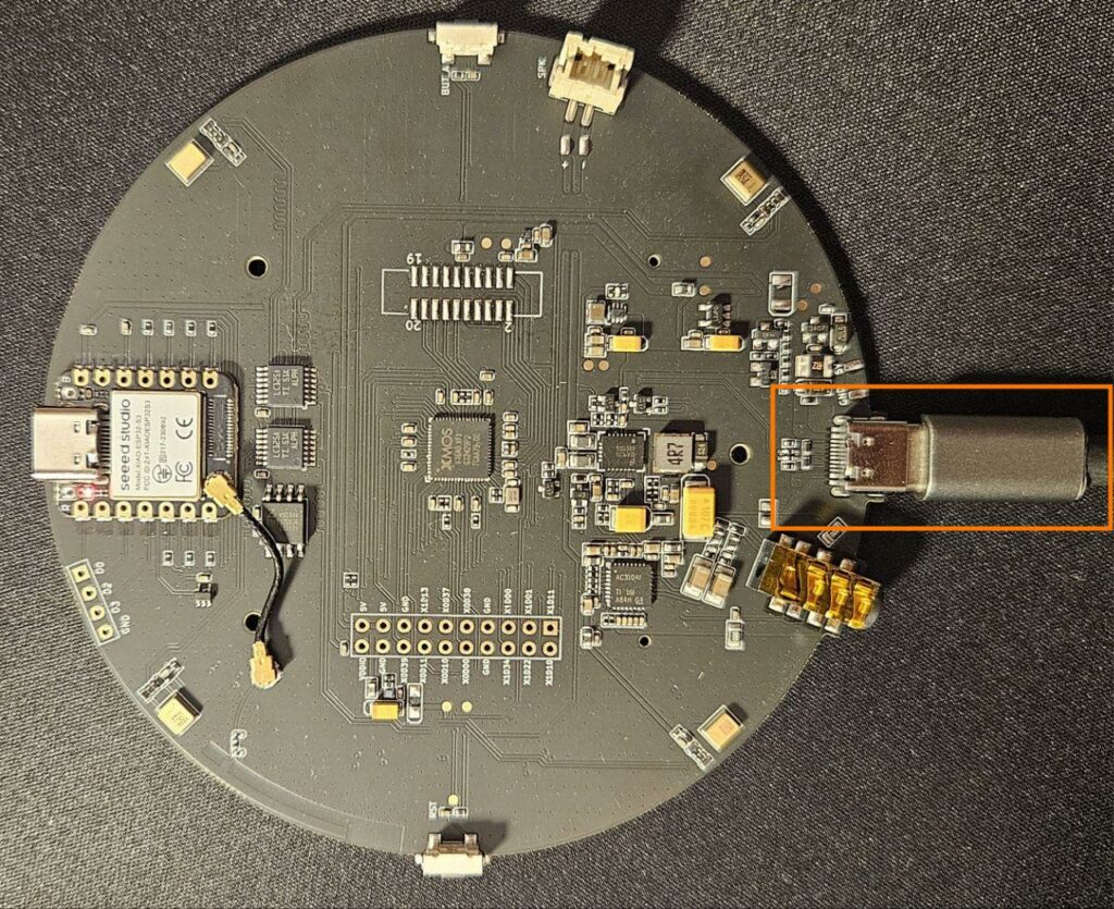 To upload XVF3800 firmware to the ReSpeaker, connect it to your computer using a USB cable plugged into the USB port opposite to ESP32-S3.