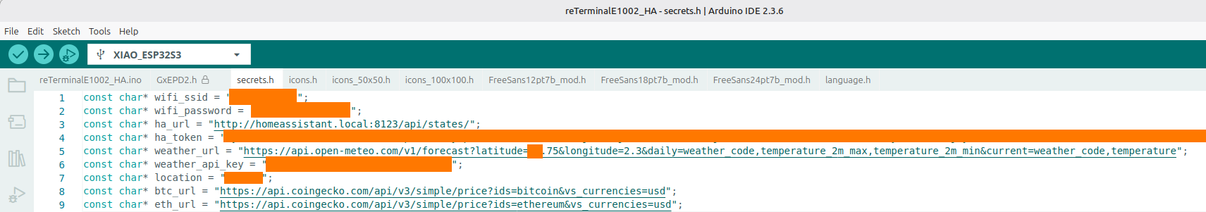 Once the token is created, simply enter it in your program using the Arduino IDE. I always recommend storing your secrets (wifi password, home assistant token, etc.) in a secret.h file that will be included in your C program. This prevents them from being leaked on Github after an accidental copy-paste, for example.