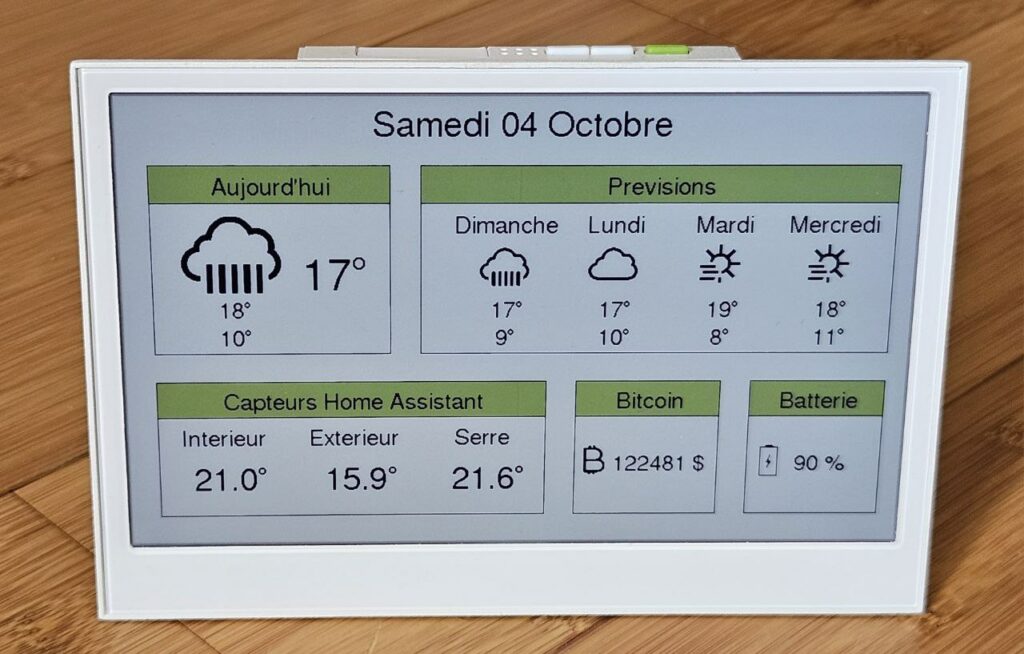 Cet appareil est particulièrement bien adapté pour l’affichage des données issues du capteur Zigbee que j’ai développé dans mon tutoriel Créer un capteur de température Zigbee sur batterie avec un ESP32C6 et que j’ai intégré à Home Assistant.